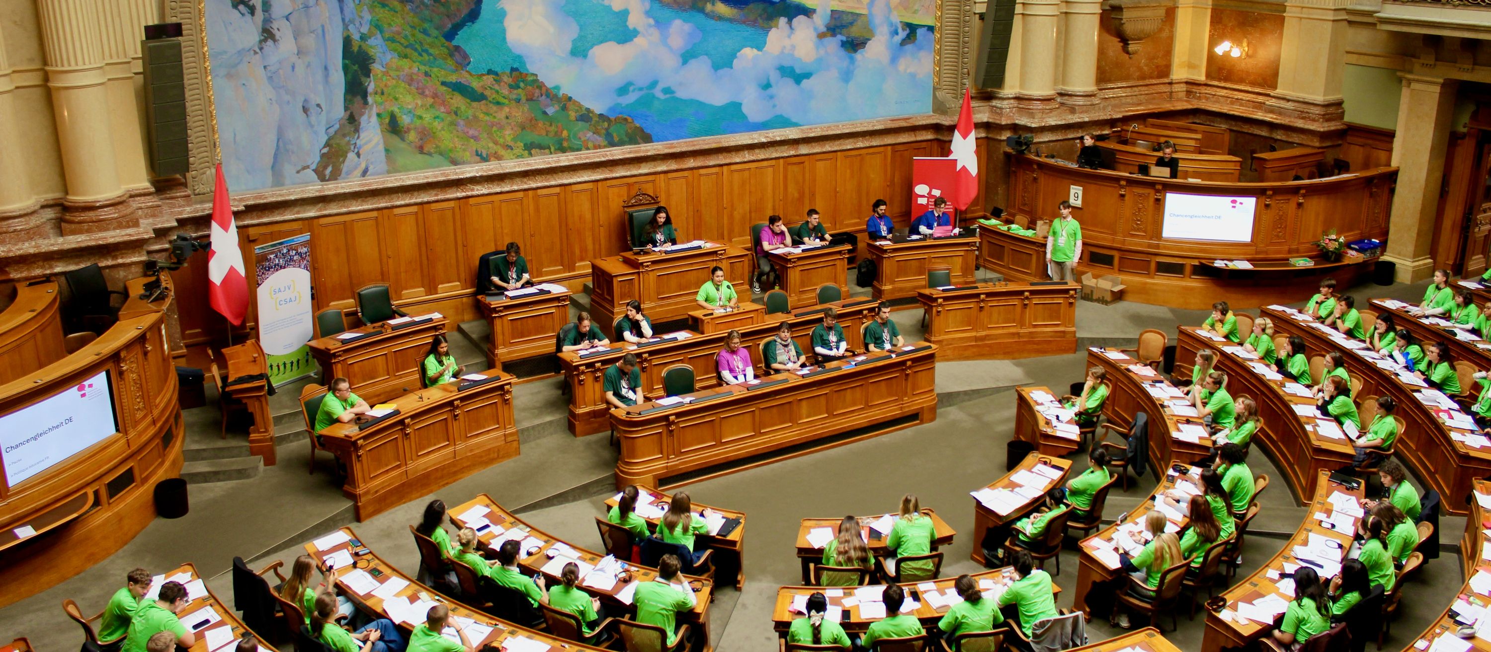 Une fois par an, le Palais fédéral appartient aux jeunes : 200 jeunes de toute la Suisse se réunissent pendant quatre jours à Berne pour discuter de leurs préoccupations et formuler des revendications politiques. Les politiciens* établis écoutent - et les jeunes parlent.